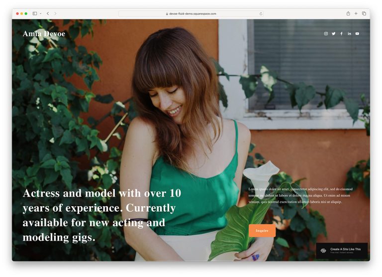 It has a clean, minimalist design with the essential elements to create an actor’s website.