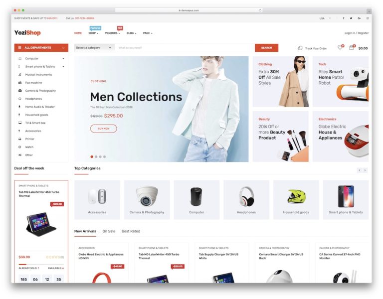 Along with index page designs, Yozi also delivers five headers, six footers, live search, a mega menu, and catalog mode.