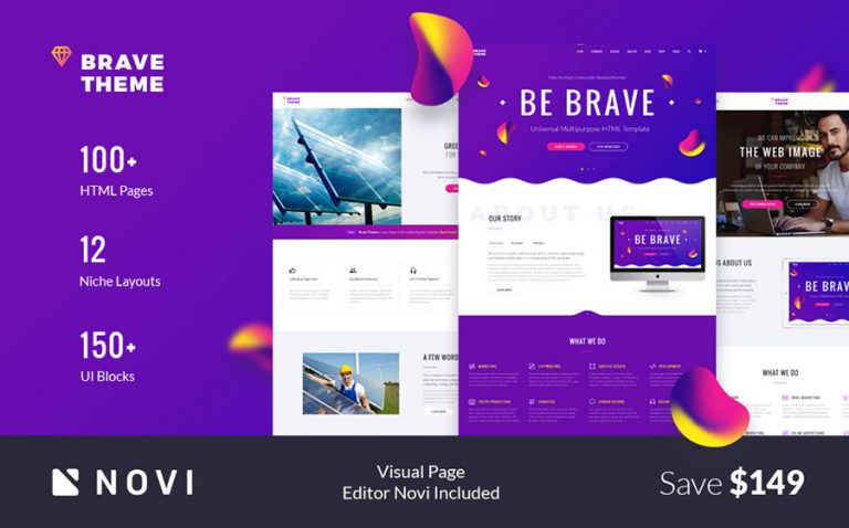 Are you brave enough to dig into the world of new possibilities? WIth the Brave template, you will discover new business heights. Use a Parallax plugin to impress visitors with a stylish website look and smooth scrolling effect. This HTML template was made for beginners, to help them pass effortlessly through the template adjustment process. It has a high level of search engine optimization and instigates follower volume growth. At the same time, Brave has flexible and universal scripts, which professional developers will highly appreciate. With 150 UI content blocks, you will demonstrate your skill and exemplary taste.