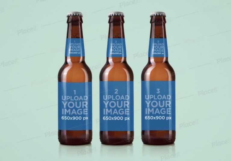 If anyone is thirsty, this is the beer bottle mockup that will make you want to grab a bottle of a cold one, sit back and relax. Moreover, this template also gives you all the rights to edit it with your beer bottle design and make a presentation that will amaze everyone. Also, the mockup works great if you need an extra boost of inspiration, as you can quickly try out all sorts of different variations without breaking a single drop of sweat. The label is 600 x 960 px dimension. Once you append your design, Placeit gives you a chance to crop and reposition it, too.