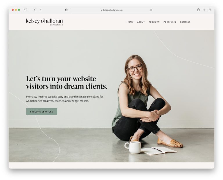 It’s an awesome copywriter website example with a unique yet minimalist design (cool details!) that ensures all your focus is on the content.