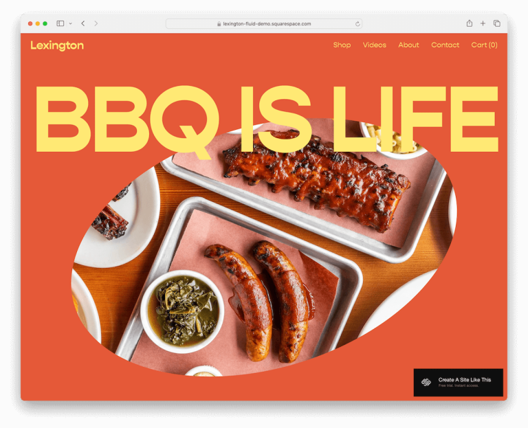The Lexington Squarespace template captivates with its full-screen design and sleek transparent header, creating an immersive user experience. (It also seamlessly integrates a shopping cart in the navbar, facilitating effortless browsing and shopping.)