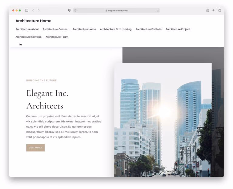 Divi is a stylish and flexible theme for building a professional website for architectural firms and portfolios.
