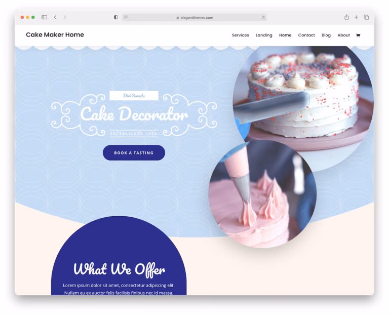 The ultimate cake shops WordPress theme, Divi, allows you to create a home for all your sweet treats and get people intrigued.