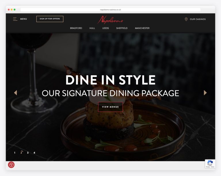 Most industries adopt the power and impact of digital marketing for business growth. Similarly, the casino industry has not ignored such a strategy too. Many casino companies invest in building a strong web presence. Check out Napoleons Casinos and Restaurants for a stunning casino website design inspiration. It offers a thrilling night out, excellent gaming facilities, and top-notch dining. The website is built to improve awareness of the brand worldwide. Particularly, the homepage design can truly boost the company’s credibility. From cool sliders, awesome logo, CTAs, good typography, and simple hover effects, they’re exceptional along with the GSAP animation. Since the website embraces the visual hierarchy, web elements look neat and clean.
