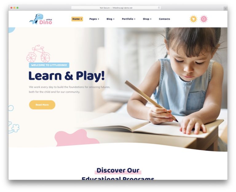 You should take a peek at the magnificent Littledino if you’re hunting for a cute children’s WordPress theme. This tool is perfect for preschool, activities, babysitting, and daycare.