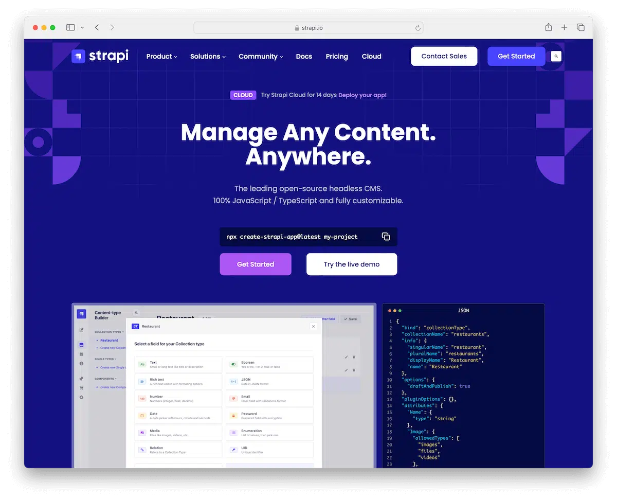 Pricing: Strapi is free and open-source. But there’s also an option to go for paid self-hosted or cloud plans.