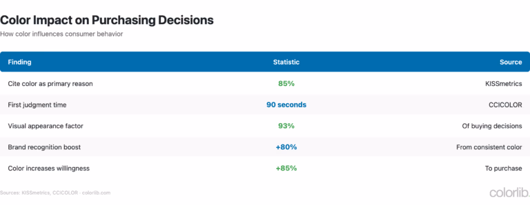 | Snap judgments based on color alone | 62-90% | CCICOLOR Institute |