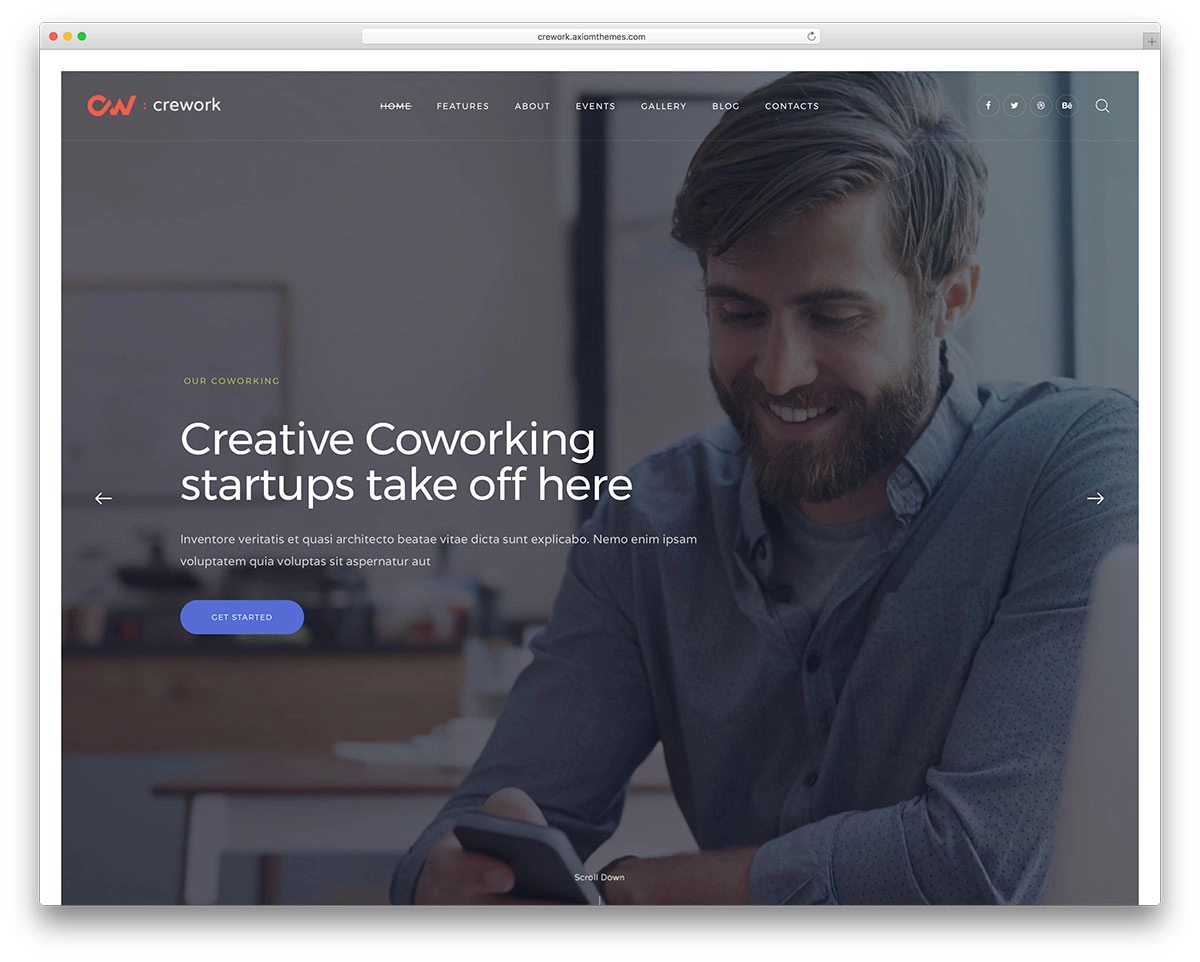 Look at Crework, a modern and powerful WordPress theme tailored for open offices, workshops, or conference rooms.