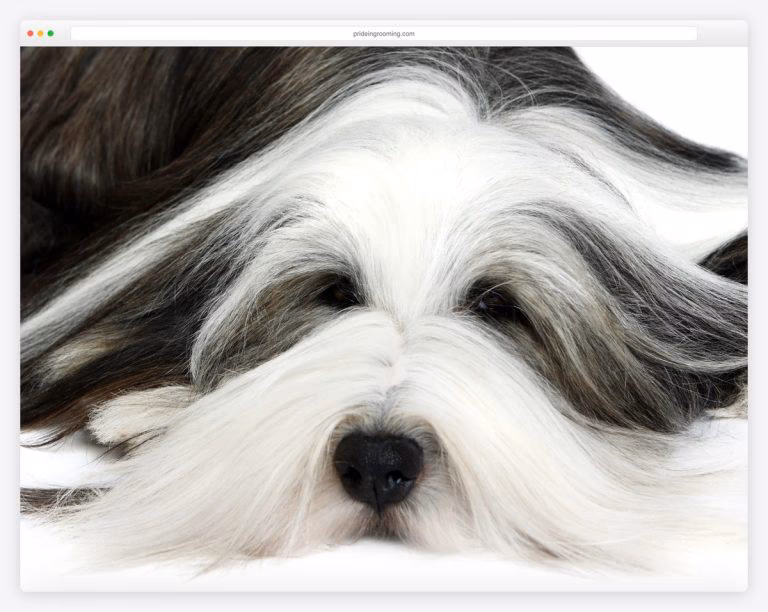 Indeed, grooming maintains healthy skin and coats for your pets. So, it is necessary to have your dogs groomed regularly. Meanwhile, dog grooming companies must have a website to spread their services efficiently. Here’s Pride in Grooming will help you find useful features for your project. Greg Hudel runs this dog grooming firm. Its website is one of the dog grooming websites that will help you get inspired! It’s a one-page website that showcases useful content with style. It uses a simple transition effect all over the site. Particularly, the header presents the logo, menu and social media icons.