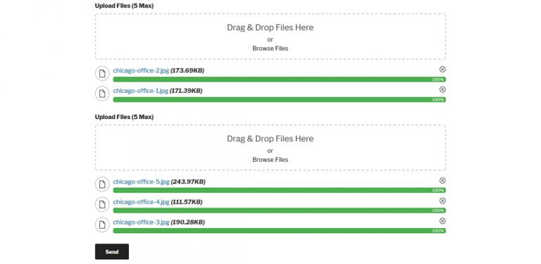 Other features it has are multiple languages and multi-browser compatibility. So, it is ideal if your website’s users come from different parts of the world. You can also manage text and error messages in admin settings. If you make mistakes in file uploading, it has a delete option before sending.