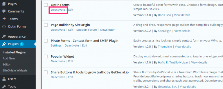 3. Deactivate Your Plugins