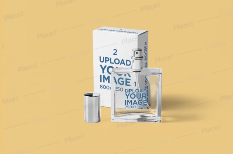 It’s not only water bottles and mason jars that come in glass, perfume is on the list, too. As far as the latter goes, when you are creating a full-blown presentation of perfume packaging and bottle, this is the mockup that will surely spark your interest. It is relatively basic, yet it ensures a sophisticated outcome that works well for social media promotion, as well as on your online store. You can add three different designs to the box and one to the glass bottle. Moreover, you can also change the color of the box and the background, add text and attach a graphic.