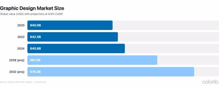 - Global graphic design market: $45.8 billion, projected $78.3B by 2032 (Fortune Business Insights)