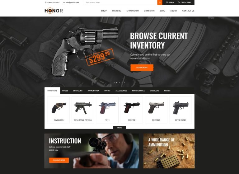 1. Honor | Shooting Club & Weapon Store WordPress Theme