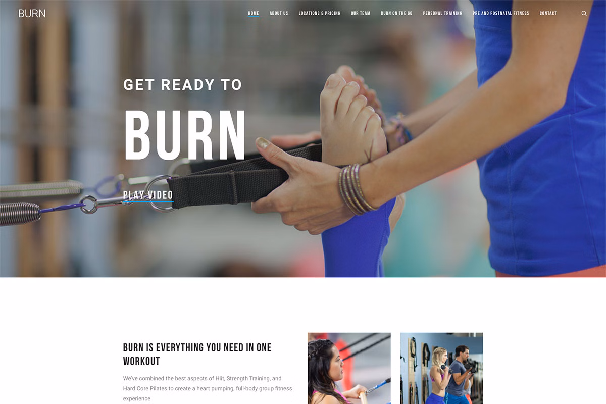 Does your gym offer fitness classes? Perhaps you should consider building your online visibility to showcase how you train and inspire people. Windy City CrossFit is a cool example of a simple yet elegant gym website design. The header displays a simple menu, like getting started, member sign-in, and an off-canvas menu. Of course, the stunning logo projects a professional image as it is centered in the header.