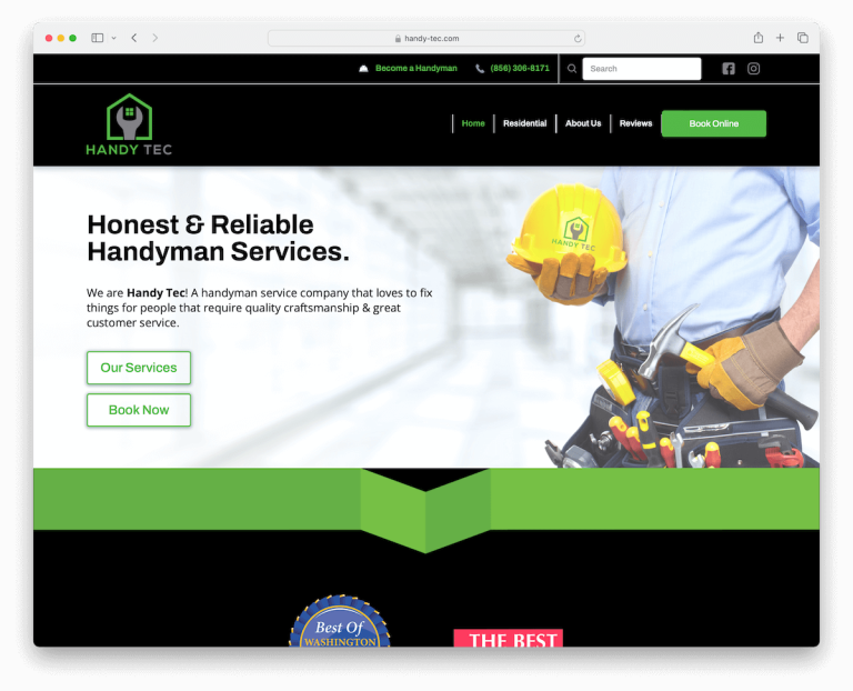 What stands out: Handy Tec rocks a solid blend of functionality, aesthetic appeal, and user convenience, setting a high standard for handyman website design.