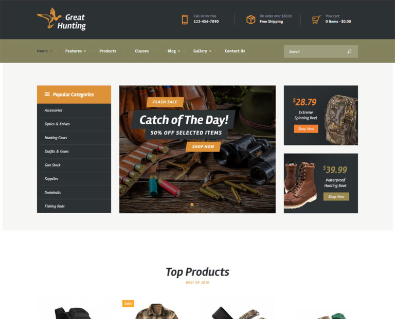 If you’re a hunter offering gear and supplies or are with a hunting community, this theme can be your best buddy.