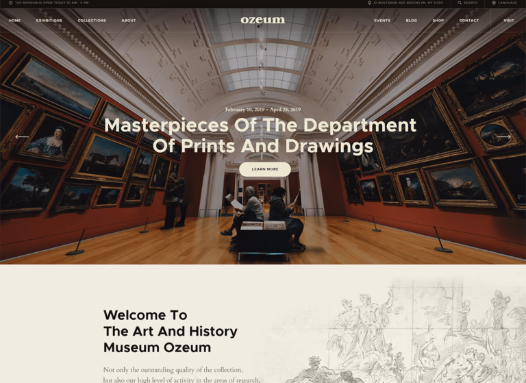 Let’s start our list of museum WordPress themes with Ozeum. Clean and attractive, this WP template can help bring the essence of your museum online.