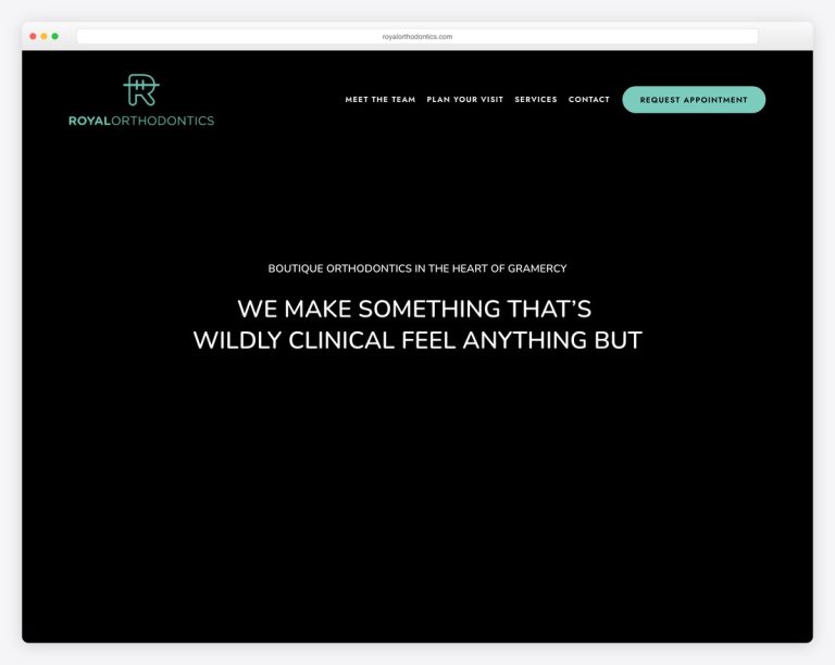 What stands out: The dark, atmospheric design creates a bold visual identity that perfectly suits Royal Orthodontics’s brand.