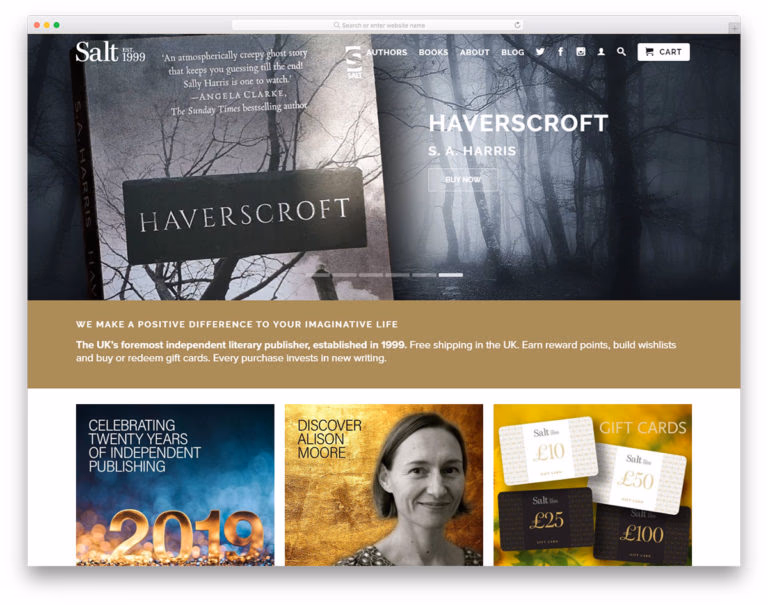 You’ve put so much effort into finishing your book, which deserves recognition. Well, you probably need the help of publishers who can easily do the work for you. Salt Publishing is an excellent website that publishes books from different authors. It comes with a great website to showcase products engagingly. The hero header comes with a nice slider where different products are highlighted. In addition, it utilizes the sticky menu for easy access on the authors’ page, books, blogs, and even social media pages. This list is beneficial if you’re a designer looking for inspiration to craft your publisher’s website.