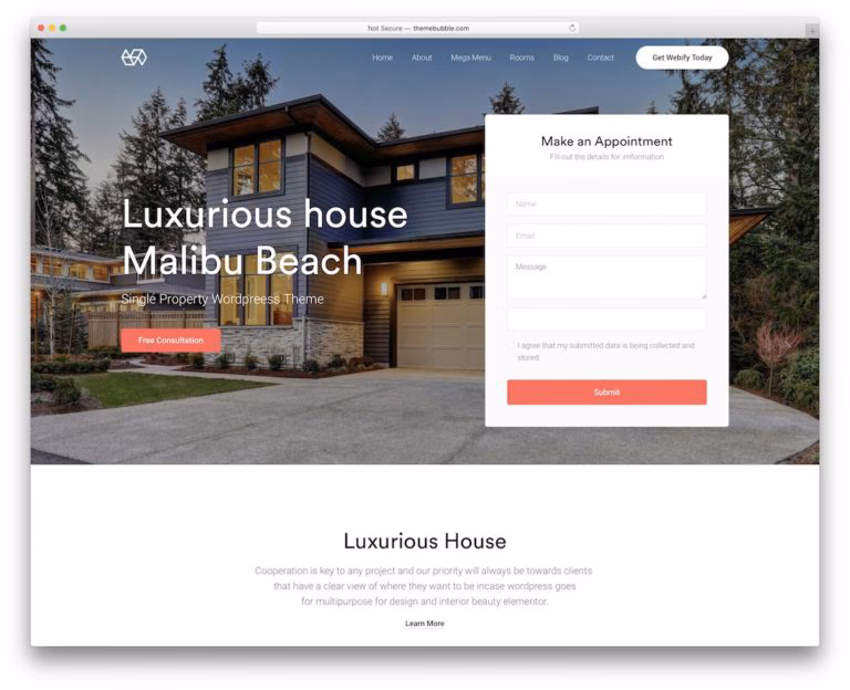 Webify is an auspicious realtor WordPress theme with all the necessary layouts and elements. It has an exclusive design for real estate and agent needs with a clean and modern appearance.