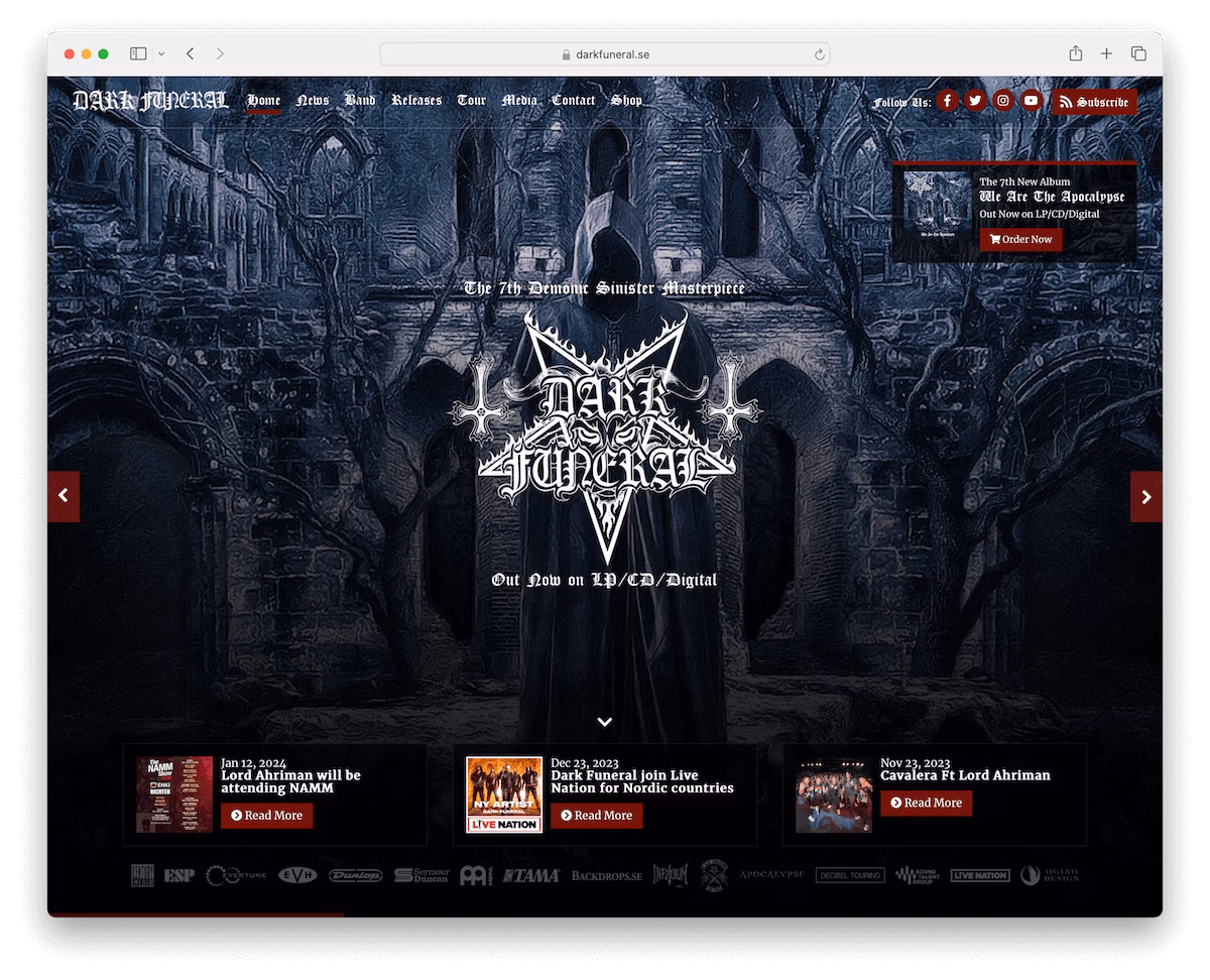 Why we chose it: Dark Funeral is an excellent example of a website that might feel scary for some but exciting for the fans.