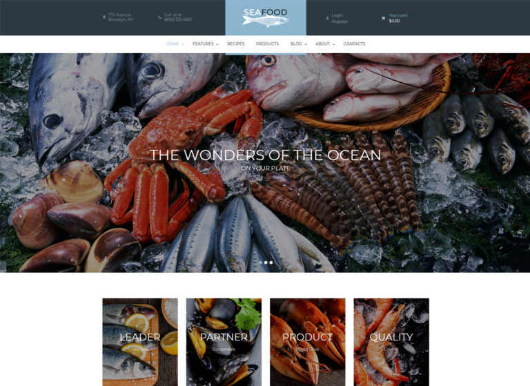 Fish House is a modern and engaging theme that can arouse interest even across the pickiest audiences. This theme is a great choice if you want to create a fancy foodie-oriented website. The theme has advanced booking forms, shortcodes, and ready-made modules (products /team/ locations/etc.). Like other premium seafood WordPress themes, it has beautiful blog skins. It offers a wide range of blog options if you want to share recipes, tell more about your upcoming events, announce new arrivals, and promote seasonal dishes.