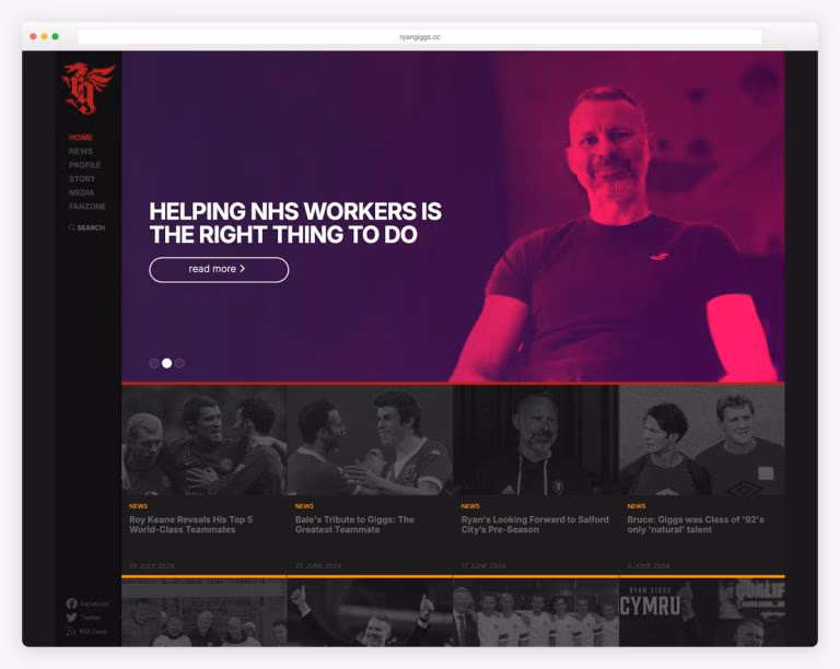 If you need inspiration in building your web presence for your sports blog project, you might want to check Ryan Giggs. It is a sports blog website that is visually oriented. This website features a dark-tone color scheme and implies elegance, sophistication, and power. It utilizes a sidebar menu for easy and quick navigation while the hero header looks cool and awesome with a slider highlighting the featured stories. Moreover, the presentation of other articles looks clean with the grid layout this website implements. Banner ads are added between those articles and social media integration for monetization purposes. What’s more? As awards and recognitions can boost the website, Ryan Giggs exhibits its awards simple yet engaging.