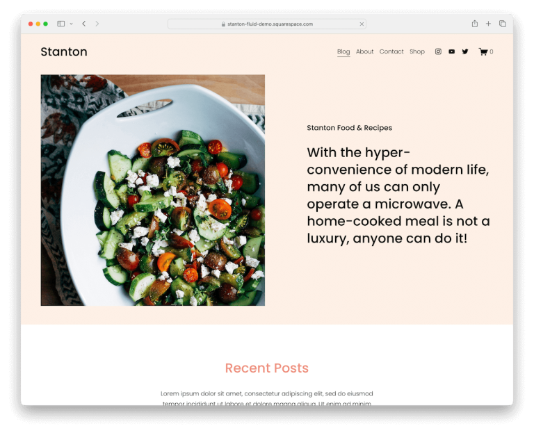 Stanton is a modern and clean Squarespace template for sharing recipes and reviews, promoting cooking books, merch, and more.