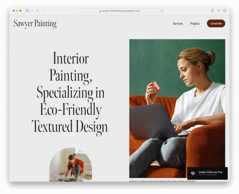 Sawyer is a superb Squarespace template with an impactful split-screen design above the fold – text on the left and image on the right.