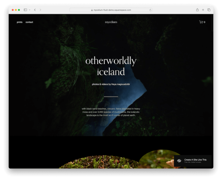 Mycelium is a spectacular Squarespace template with an impactful dark design and video background.