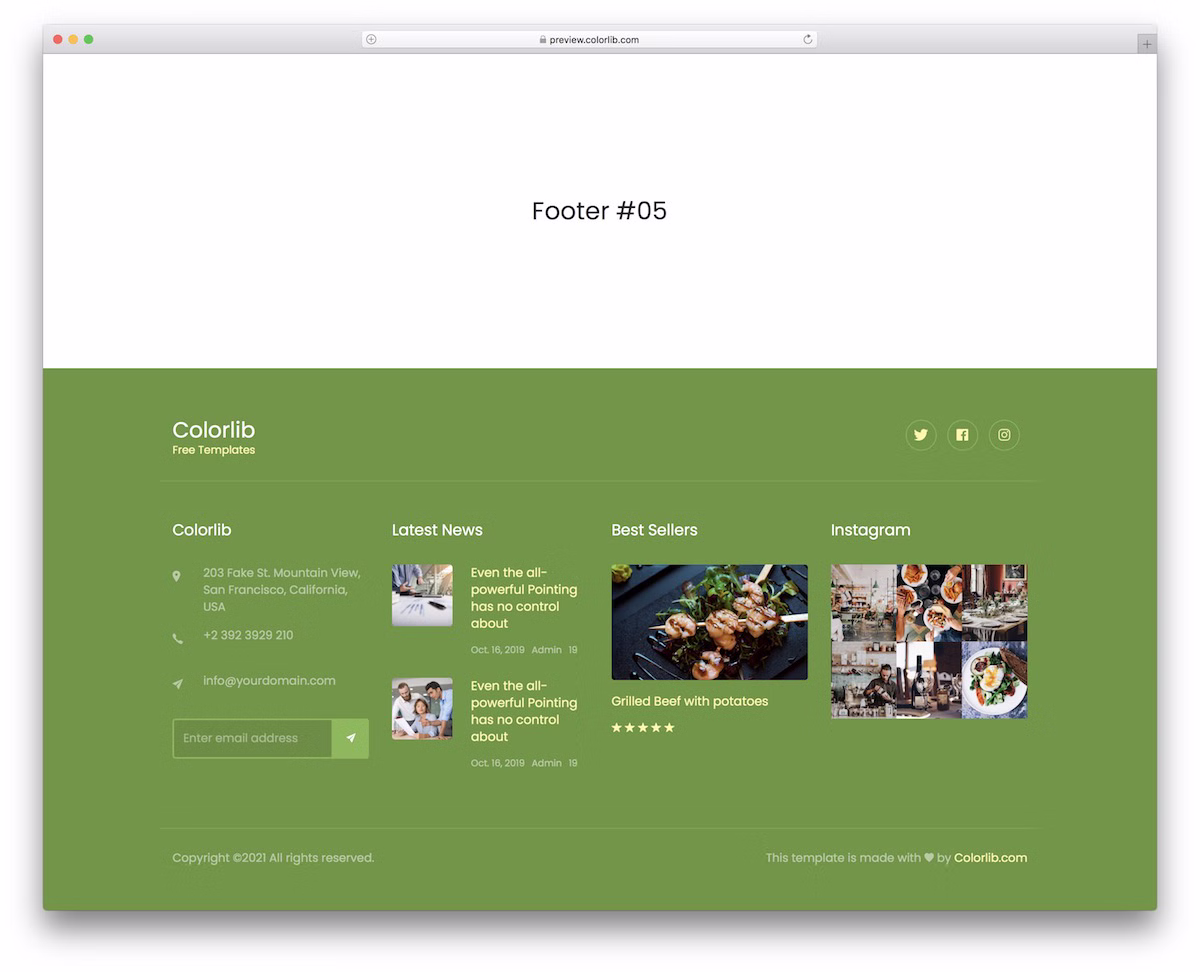 If you would like to add more content to your website’s footer area, this free 4-column footer template will come in very handy. Instead of building it from the ground up, put into practice this flexible and all-around free snippet.