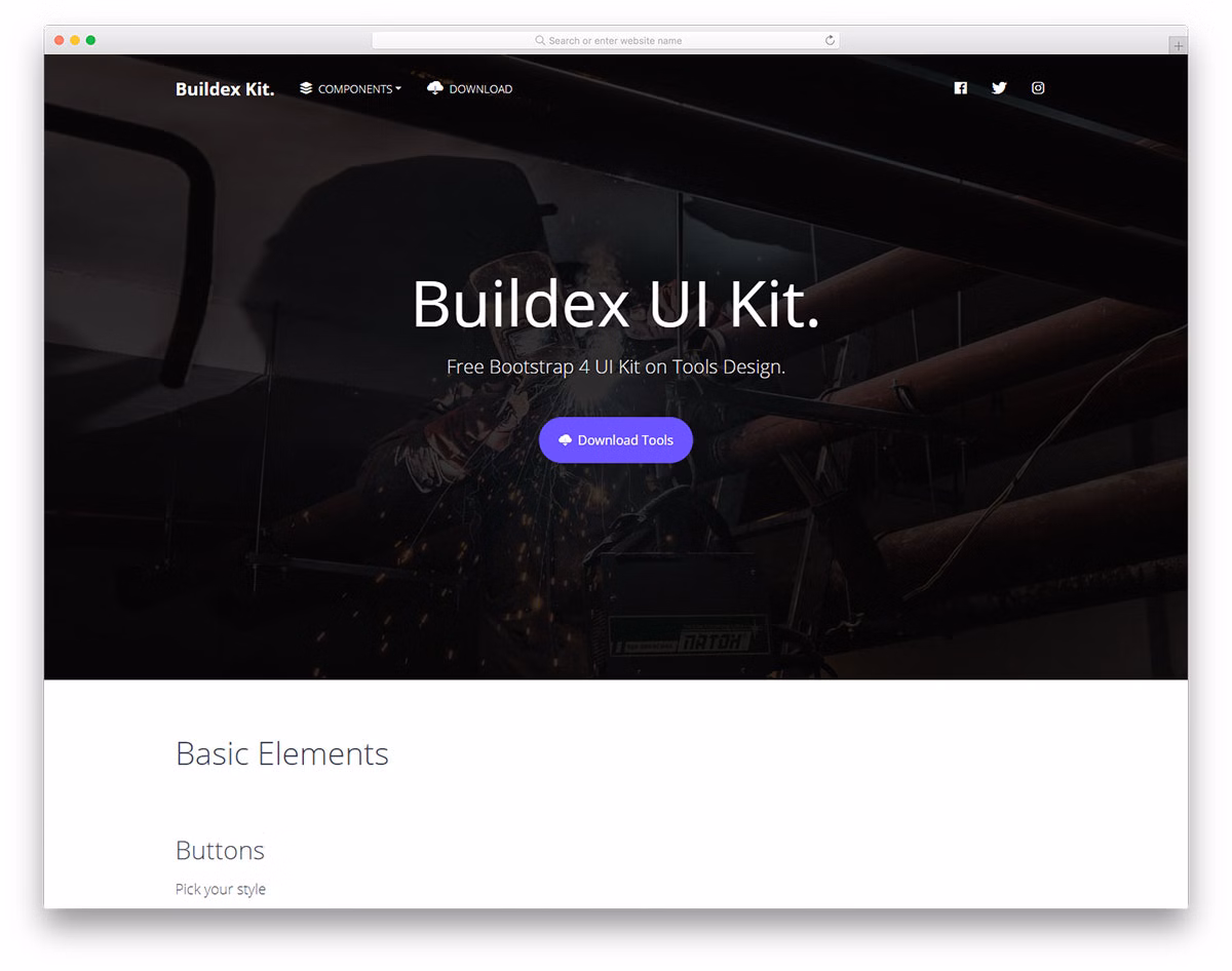 Speaking of elements, Buildex treats you to buttons, link styles, inputs, checkboxes, paginations, menus, navigations, you name it. Moreover, Buildex even includes a Bootstrap carousel, cards and card login from with social media icons. Keep the creativity and professionalism of the highest degree with Buildex, a free Bootstrap 4 UI kit.
