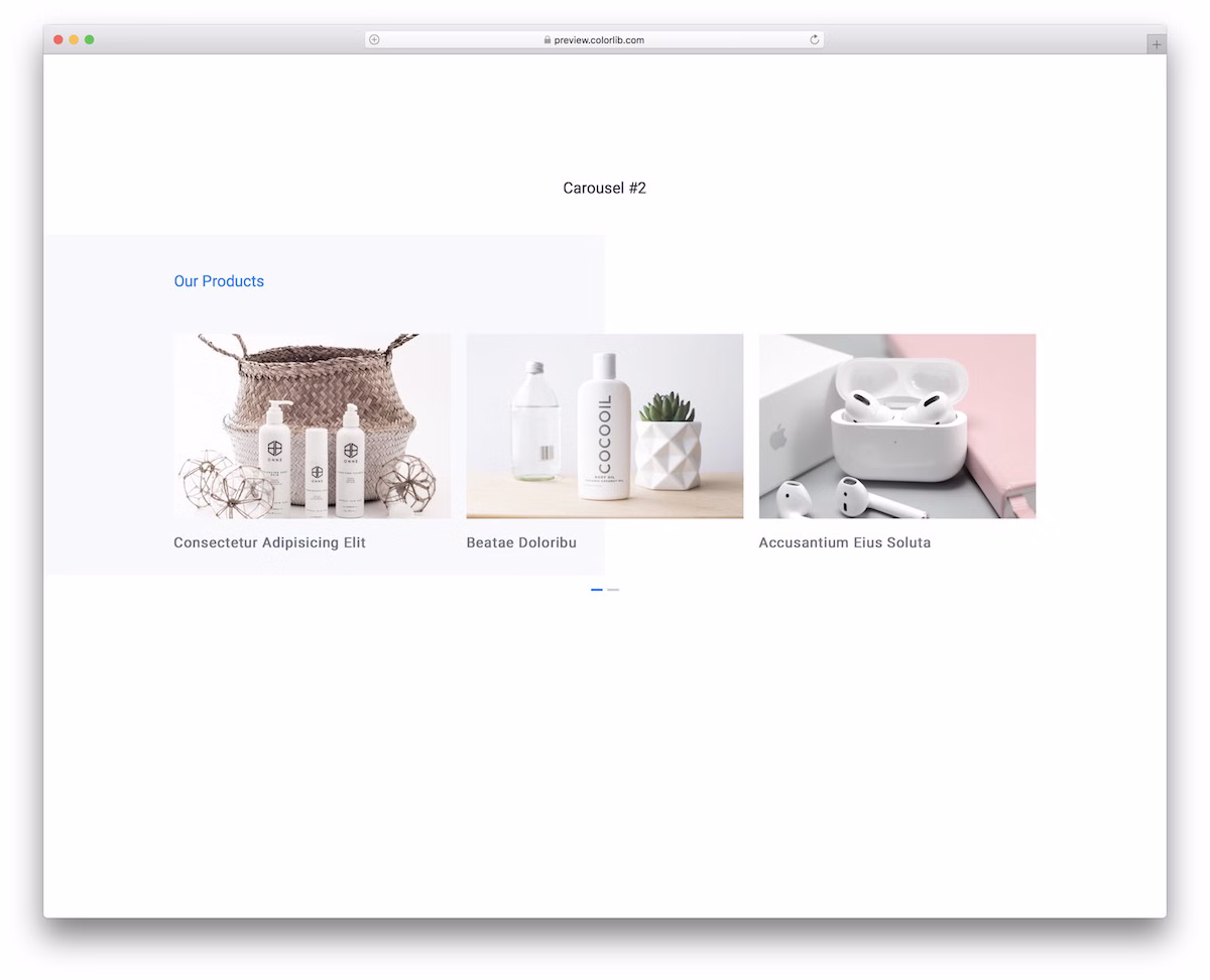 As an eCommerce website owner, you will greatly benefit from this free product list carousel template. The free snippet uses Bootstrap and a clean and creative design that will beautifully display your must-buy items.