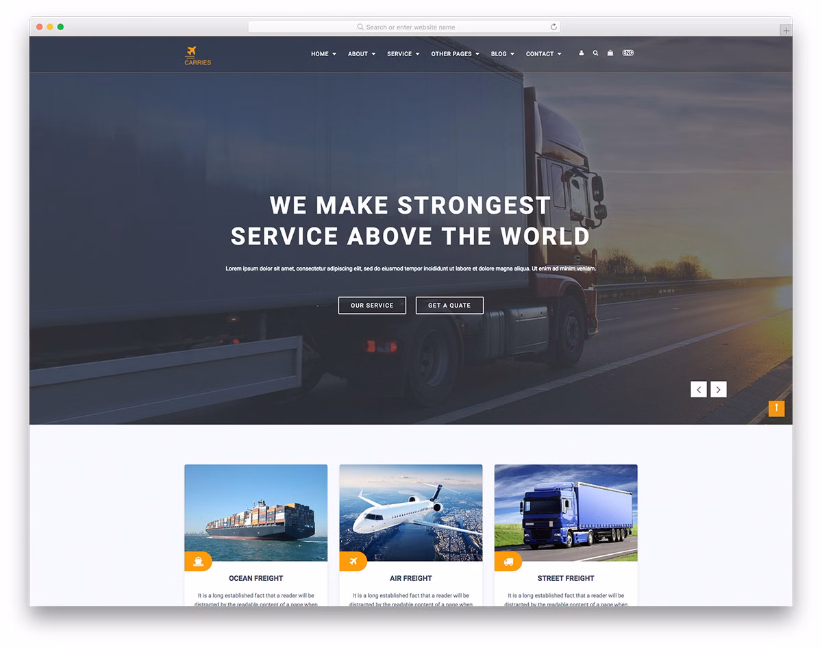 Carries is a responsive and flexible template for transport services that works smoothly with mobile devices and desktops. If you need a free skin for your trucking, shipping, transport, logistics, cargo, or any other business related to the industry, Carries is the one. Promote your company and be visible worldwide with help from Carries’ professionalism and sophistication.