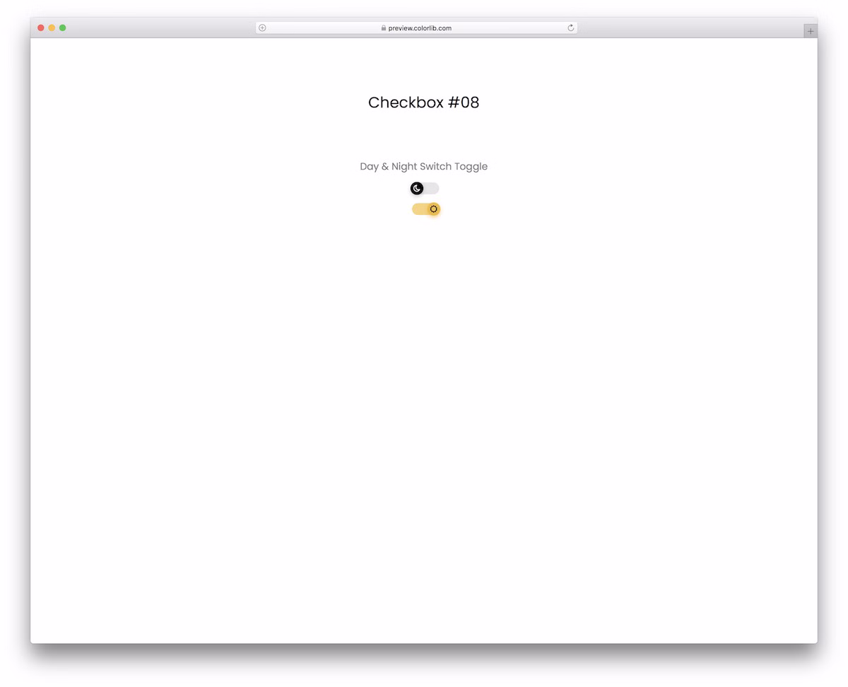 For everyone who would like to offer their users to change between dark and light modes manually, this free day and night toggle switch will do the trick. It is neat and easy to use tool with color change on switch and moon and sun icons.