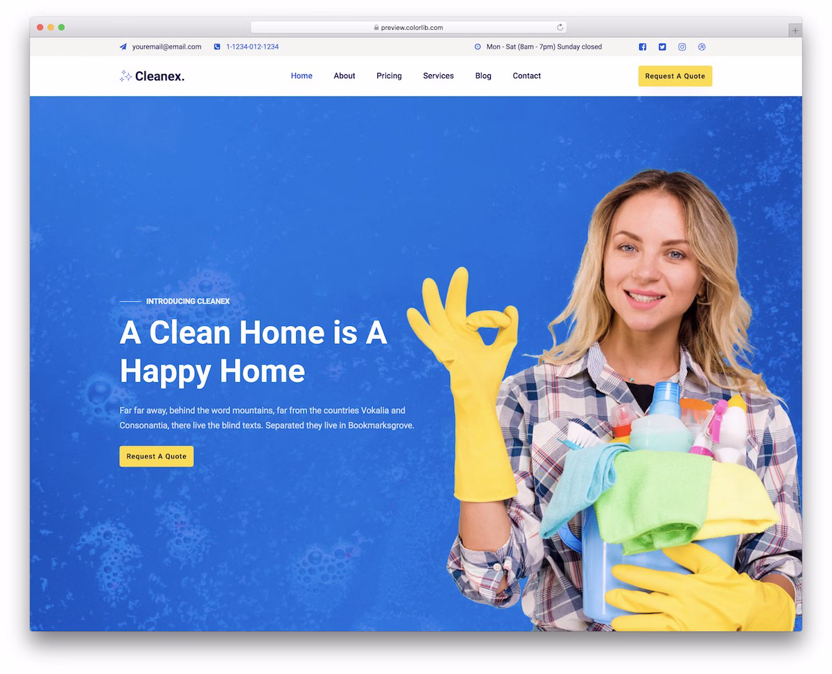 Furthermore, Cleanex features a full-screen banner, parallax effect, CTA buttons, social icons and pricing tables. Write a compelling about page, offer visitors to book your services directly from your website and even start a blog. In short, Cleanex is here to make a difference for everyone.