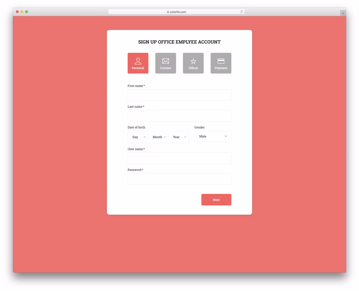 This free employee account template is great for any job board or even freelancer platform that you are working on. Of course, you can also make adjustments, so the final four-step wizard fits your audience to a tee.