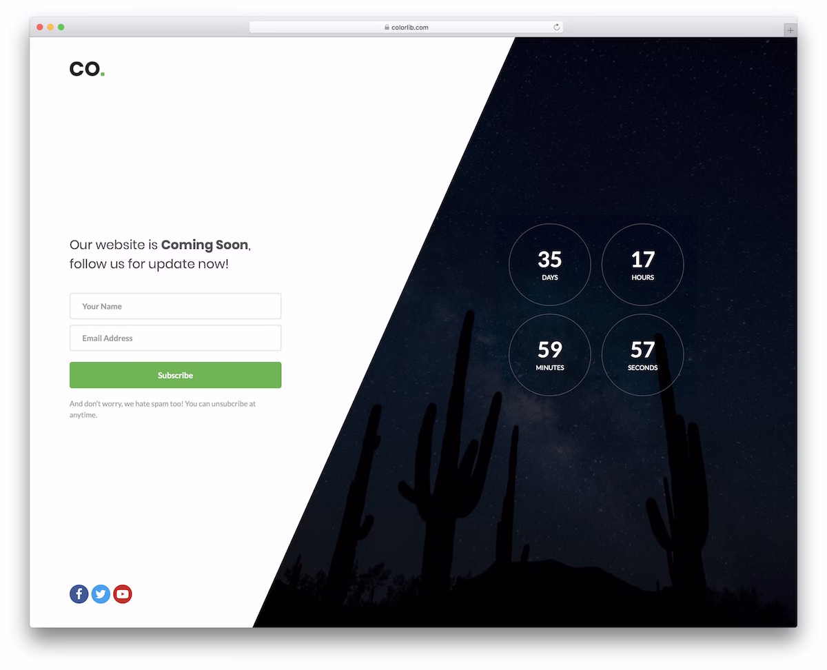 Here is a convenient free coming soon website template that uses Bootstrap as a base to ensure excellent performance. The design is clean and creative, rocking the best of both worlds to create a pleasant experience.