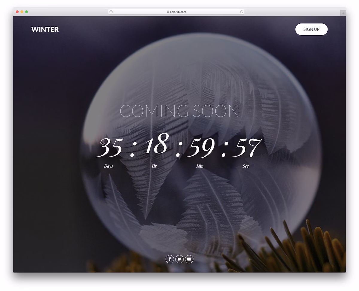 A coming soon page does not need to be boring; spice things up with this impressive free website template. It features a background slideshow, countdown timer and social icons. You can also add a sign-up pop-up and activate the predefined CTA button.