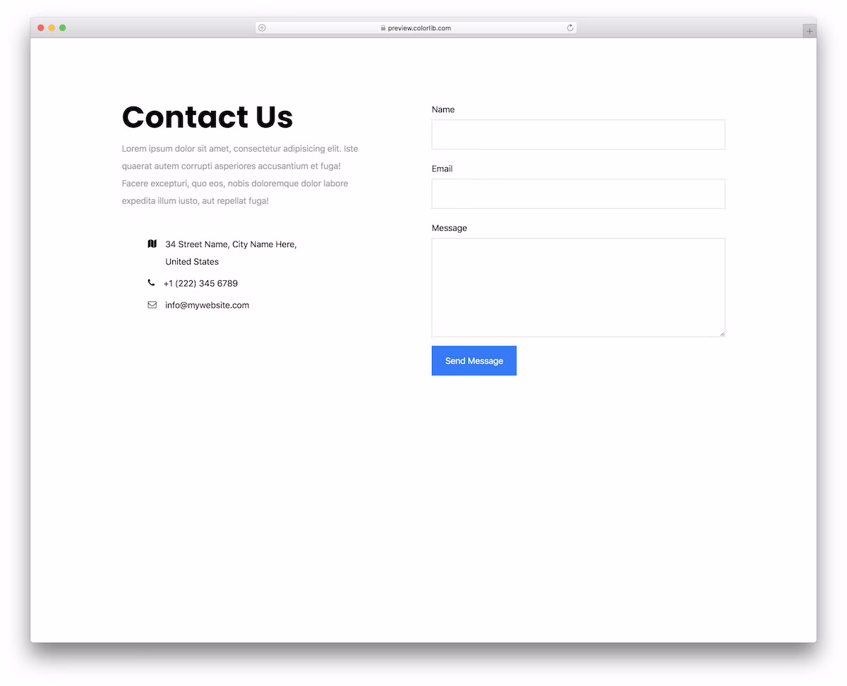 If you search for a predefined template, this free general inquiry contact form snippet will do the trick. Give your site visitors an option to reach out to you at any time they want, without picking up the telephone.