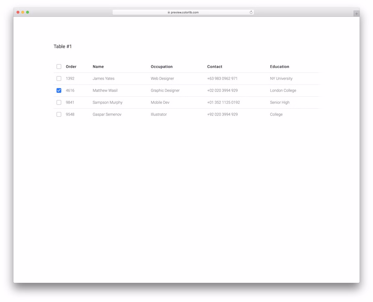 A full-blown free responsive table template that you can take to your total advantage and use for any project. This particular snippet is perfect for everyone who likes to keep things on the minimal side.