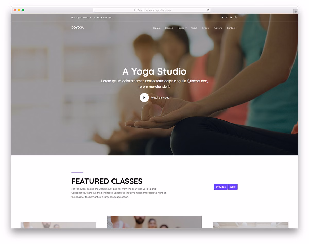 Other special treats of Doyoga are full-screen banner, video support, multi-level drop-down menu, sticky navigation and filterable gallery/portfolio. There are also a working contact form and an events section part of the design, too. If you are looking for a free one page yoga template, Doyoga gets you rolling in no time.