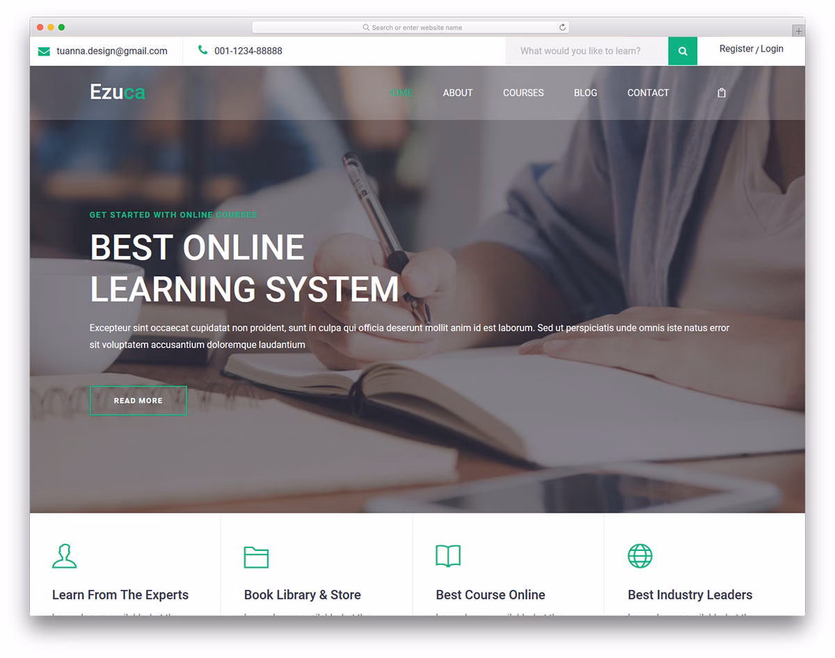 Ezuca is your go-to online learning website template when in need of sorting out your webspace. It provides you with all the features and assets you need to expand your reach and attract even more fresh students to join your community. The web design of Ezuca is clean, mobile-ready, and compatible with all modern web browsers. After all, Ezuca is founded on Bootstrap 4 for the flexibility and freedom of use you deserve.
