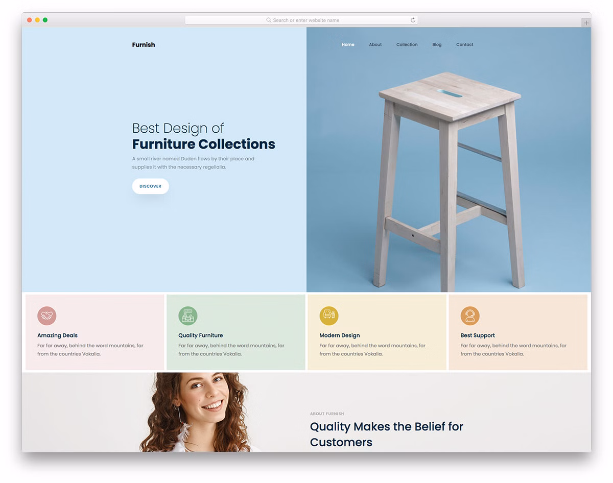 Furnish also uses only the latest technologies (Bootstrap 5), following the current web trends to a tee. You know that your website will perform BUTTER SMOOTHLY across all modern devices and popular web browsers.