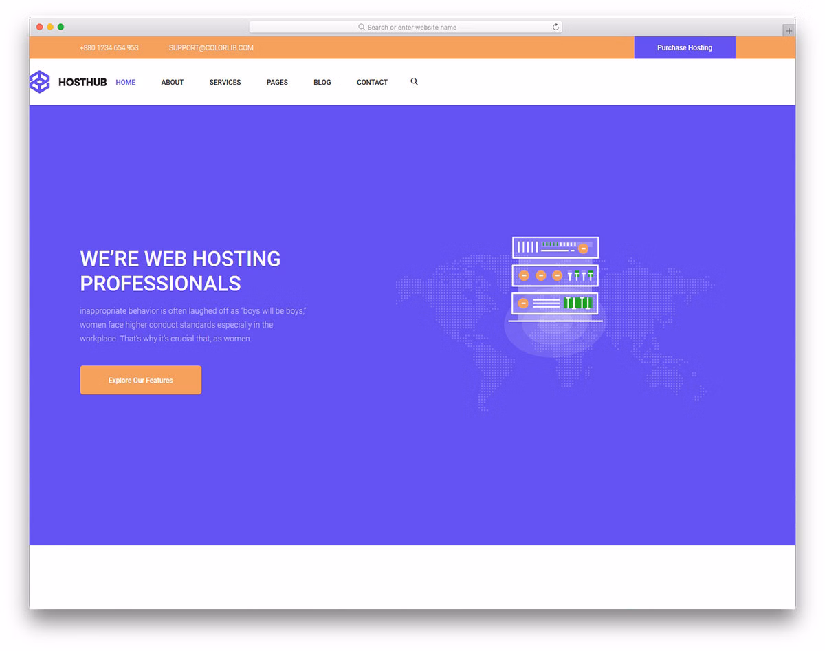 Get your web hosting firm known with Hosthub hosting website template. Create a unique experience that users of all devices will adore and remember. Hosthub is a responsive, retina-ready, and cross-browser-compatible Bootstrap template that provides stability and flexibility that your modern page requires. Great assets, neatly packed in one kit, will help you undergo a quick process of establishing and launching a refreshing website.
