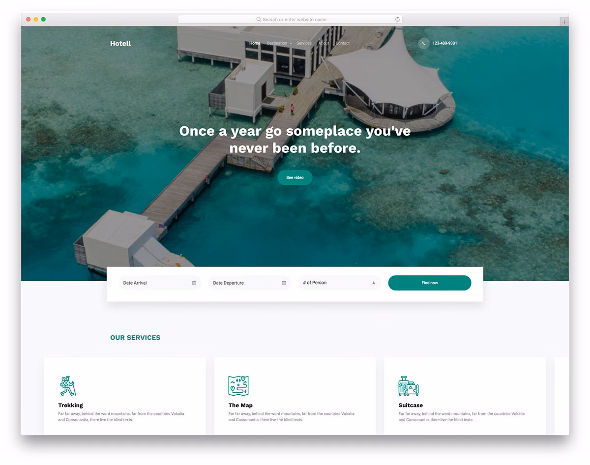 Hotell is a simple hotel website template with an engaging, modern and creative appearance. Keep in mind, Hotell works flawlessly for other accommodation businesses as well, so no need to feel limited in any way. While you can work with Hotell as is, you can also configure its default settings, altering and branding it accordingly.
