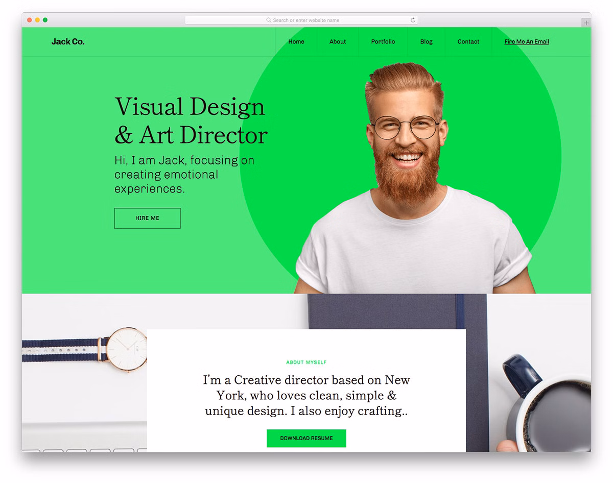Jackco is one of our MOST VIBRANT personal profile website template designs that you can get your hands on. If this is your style, you will do magical things with Jackco. It’s cool because you can use it as-is if you are in a hurry. Still, you can customize Jackco, too.
