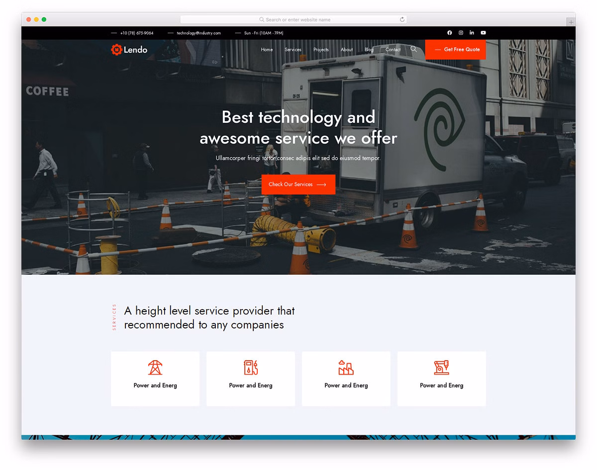 Moreover, Lendo comes with stunning layouts, organized code, brand logo slider, animations and back to top button. You can also share client testimonials, start a blog and showcase your most-proud projects. Google Maps integration is also part of the deal and a functional contact form, so you do not need to make it happen on your own. Take your industrial business to new heights with Lendo.